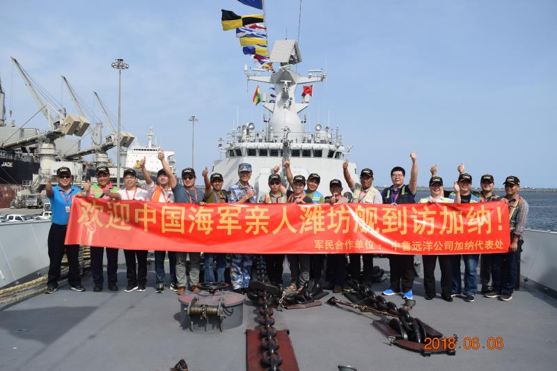 公司代表表示,作為中國首家在大西洋海域從事圍網捕撈生產的遠洋漁業企業,中魯公司船隊常年在遠離祖國大陸的深海大洋從事捕撈、運輸等業務。近年來,公司海外業務發展實現了歷史性的飛躍,這離不開中國護航編隊的保駕護航,是你們為中魯公司海外經營發展提供了安全保障和堅強后盾,在此由衷感謝全體護航官兵?,F在,艦艇編隊首次到加納,展現中國海軍的風采,編隊的濰坊艦是中魯公司的軍民互助合作單位,能在不遠萬里的加納再次見到自己的親人,倍感親切和激動,也讓我們感到無比的光榮與自豪。