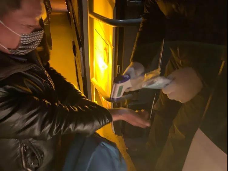 所有返崗員工上車前,均經過出示健康通行卡、檢測體溫、佩戴好口罩、手部酒精消毒四個步驟,歸程途中車長對車上人員進行體溫復檢,確保上車時健康,行車中安全,做到隨時動態監測。