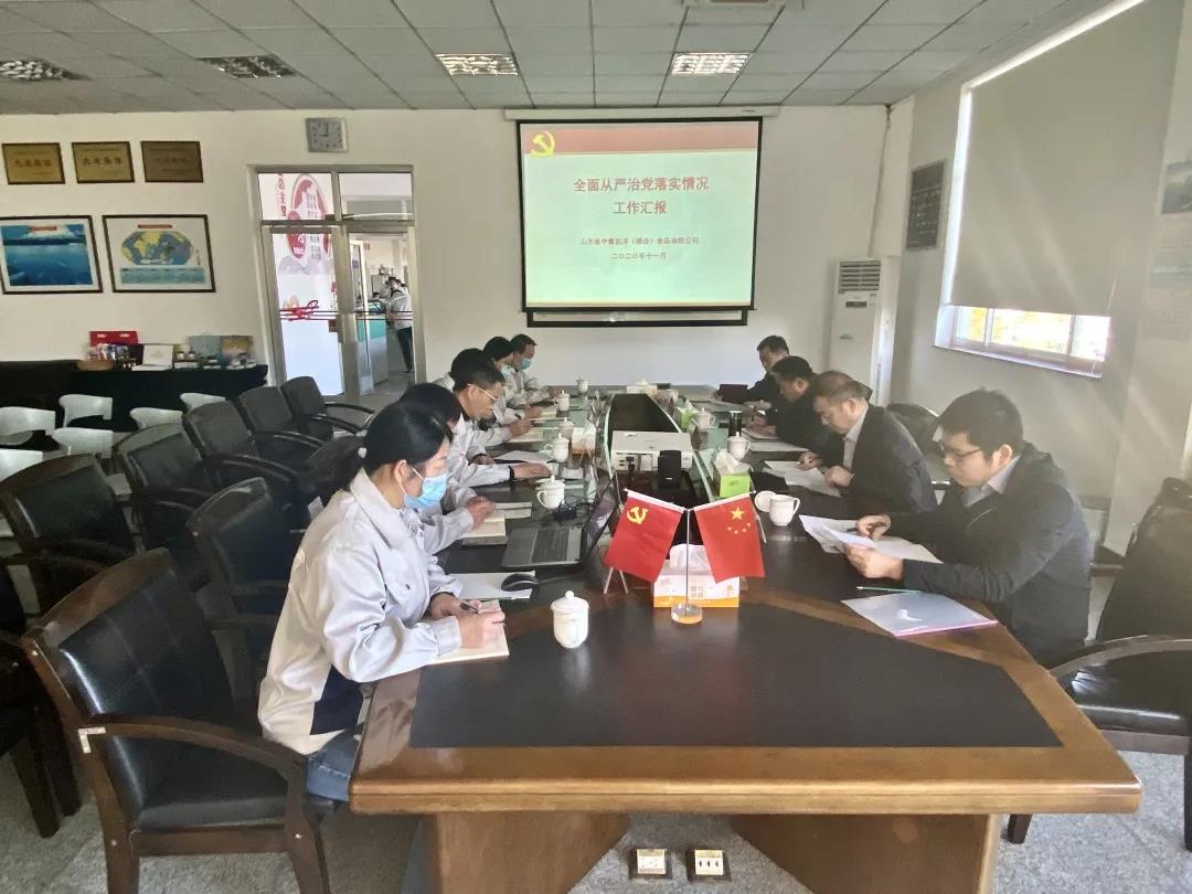 在聽取中魯食品黨總支書記徐志超的全面從嚴治黨工作情況匯報后,盧連興董事長對中魯食品的黨建工作及從嚴治黨工作取得的成效表示肯定,并提出要求。要求全體黨員干部深入學習貫徹習近平總書記系列重要講話精神,堅決落實省委巡視整改專題督導調研關于全面從嚴治黨工作的部署,進一步深化認識、壓實責任、嚴格執紀,提高政治站位,高度重視落實全面從嚴治黨主體責任中存在的問題,找準問題癥結,深挖問題根源,采取強有力措施,確保整改到位。對出現的問題不遮掩、不推諉,真反思、真整改,查漏補缺,建章立制,以上率下,以身作則,旗幟鮮明講政治,壓緊壓實真整改。促進全面從嚴治黨和企業發展“兩手抓兩手硬”,為企業高質量發展提供有力保障。
