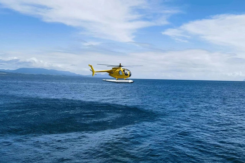 近日,在巴布亞新幾內亞海域,一架小型直升機完成流木魚群探查任務后緩緩降落在“泰隆9”輪直升機平臺,這代表中魯遠洋公司大型現代化金槍魚圍網捕...
